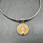Monet Silver Tone Round Enamel Pendant Statement Collar Necklace Womens 16"