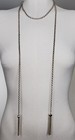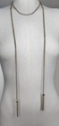 BCBG Max Azria Lariat Necklace 58 inch Gold Tone Double Chain Choker Tassels