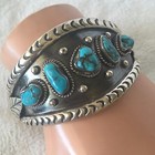 OLD Gorgeous Hand-Stamped Sterling Silver TURQUOISE Cuff BRACELET Vintage Pawn