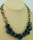 CHICO'S Gunmetal Choker Necklace Blue Faceted Cushion Cut Rhinestones ~Up to 18"