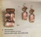 Lia Sophia Mochachino slide has mother-of-pearl cover by facet cut acrylic stones in very light and a darker brown color which help reflect the different colors in the mother of pearl, blackened antiqued matte gold tone setting, is just under 1 1/2" long, from display, no box.