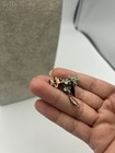 Necklace and earrings with light green enamel flower charms and dark metal in vgc