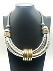 Substantial in weight and design, this is a confident, fashion-forward piece perfect for structured tailoring, minimalist outfits, or full Y2K styling. Design: Multi-strand tubular collar with central gold tone rings.