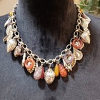 Womens Fashion Multicolor Banded Agate Stone Charm Necklace with Lobster Clasp