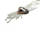 Vintage Multi-strand White Seed Bead Brown Striped Heart Pendant Tassel Necklace