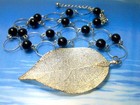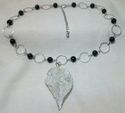 Leaf Pendant Chain Necklace Realistic Silver Tone Beaded Nature Inspired 20“