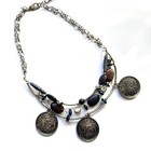 Chico's Silver Tone Layered Beaded Statement Necklace Brown Blue Southwestern