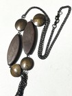 Vintage Style Necklace Wood Look Metal Tassel Boho Brown 60cm