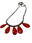 Red Teardrop Necklace Bead Statement Adjustable Gray Cord For Women Boho Chunky