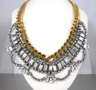 Silver Tone Layered Chain Necklace Multi Strand Chunky Link 16 Inch Statement