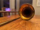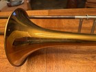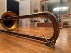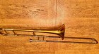 1940's Martin Imperial Trombone is a vintage tenor trombone in its original case. Single owner from 1940's. Serial Number 126187. Brass finish. Very good condition, small cosmetic dent near mouthpiece, slide is smooth and free. Tape on the handgrip from original player. Case also in good condition, no tears or damage inside, needs cosmetic / mold work on bell end. Sold as-is. Please reach out with questions!