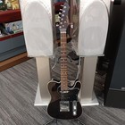 This is a TARGET BY FERNANDES MGT Mockingbird MG hide electric guitar in black. C:Model: TARGET BY FERNANDES MGT. Body Type: Mockingbird style, a type of shaped electric guitar. C:Body Type: Mockingbird style.