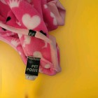 This Top Paw dog coat, features a pink and gray color block design. The exterior is made of a smooth material, while the interior is lined with a soft, gray fleece. It has a velcro closure around the belly and a pink collar. The coat is in great condition, free from any visible defects. Note—size medium!