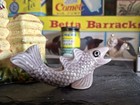 Vintage Aquarium Fishbowl 2 Lot Ceramic Big Eye Fish & Swim Around Yellow Temple