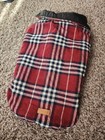 DogLemi (I think is the brand) red plaid dog jacket. I don't know the size of the dog jacket but I did put pics with measuring tape for your reference. Used, kept in drawer and in great condition. Please view pics and message me for any questions. $10 flat rate for shipping, handling and tracking info. Thanks for looking!