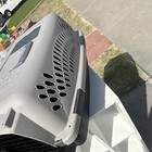 Gray Plastic Hard-Sided Dog Travel Crate Carrier with Black Metal Door