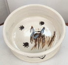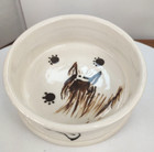 Dog 6"R x 2.5"D White Hand Paint Dog Bone & Dog Inside Food Water Pet Bowl