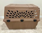 Increasingly hard to find Deluxe PetMate Pet Porter Pet Carrier - this older "classic" version is much more sturdily constructed than newer PetMate models. Color is "Taupe" (Brown). Carrier top can be placed inside bottom for more compact storage when not in use.