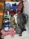 Dog Apparel Lot Harness Jackets Clothes Carrier Bag Small and XS mixed Pet Bundle used may have imperfections from usage and storage. Would recommend a good cleaning