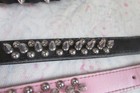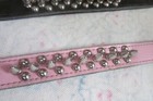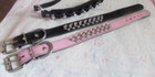 A LOT OF 2 BLACK & PINK LEATHER NECK COLLARS STUDS & SPIKES TOTAL LENGTH 15.5”