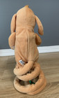 For sale is an animated plush dog made by Raaco Toys. Although this guy is seemingly a dog when you press his button he sings the Tigger song from Winnie the Pooh (The wonderful thing about Tiggers, is Tiggers is a wonderful thing.).