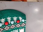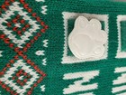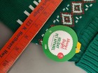 Featured on this Christmas sweater is a checklist graphic knitted into the design and also features red and blue fluffy pom poms down at the end of the sweater. The lists varies widely and changes often.