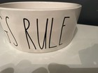 Condition: Pre-owned in excellent condition. No cracks or chips. Light signs of normal use if any. Details: • Brand: Rae Dunn (Magenta Artisan Collection) • Material: Ceramic • Color: White with black lettering • Text: “DOGS RULE” • Made in China • Dishwasher safe / Microwave safe Size: Approx. 8–9 inches diameter (see photos with tape measure) Perfect For: Dogs of all sizes — great as a food or water bowl. Stylish farmhouse aesthetic.
