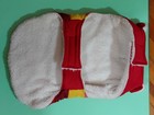 Dog Vest Extra Small Red with Black White Grey Blue Stripes Hood With Faux Brown