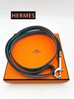 HERMES Dog Leash Blue Leather Silver Hardware Made in France Authentic Rare