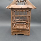 Vintage Wood Bird Cage Teak Bamboo Hanging 20 inch