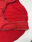 Red dog coat with attached "scarf" in Burberry-ish plaid print (note: this isnot a Burberry product and not trying to represent it as such - just saying it kind of looks like their plaid). Cutest dog coat ever (except for maybe the Juicy Couture dog coat or Xmas sweater I also have for sale)!