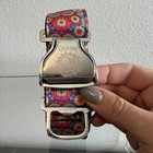 Upgrade your pup's gear with this eco-friendly Cycle Dog collar. Made from recycled bicycle inner tubes, this durable, quick-drying collar features a built-in bottle opener. • Brand: Cycle Dog. • Size: Large. • Design: Vibrant psychedelic tie-dye pattern in red, yellow, and blue. • Features: Patented "Pup Top" bottle opener and heavy-duty quick-release buckle. • Aesthetics: Boho, Outdoorsy, Hippie, Eco-Conscious. • Condition: Excellent pre-owned condition. Cycle Dog Collar, Recycled Dog Collar, Bottle Opener Dog Collar, Large Dog Collar, Tie Dye Pet Gear, No Stink Dog Collar.