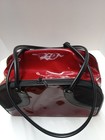 Pet Carrier Tote 15x10x7 shiny red vinyl-type tote, side loading. Inside has removable carpet on floor. Good for cats or small dogs.