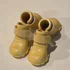 This product is a set of four yellow rubber rain boots in size XS, designed specifically for dogs. The boots are waterproof, making them ideal for keeping your pet's paws dry and clean during rainy weather. Made from durable rubber, they provide a comfortable and protective fit for your furry friend. Perfect for pets who need extra protection for their paws, these boots are a practical and stylish addition to your dog's wardrobe. Please see photos for exact condtion, sold as is.