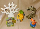 Cute decorations for your pet fish! Nice white coral, gray dragon, Spongebob's pineapple house, Nemo, and a Hobbit doorway for your little pals to swim around and entertain themselves. Nice bright coloring and in excellent condition.