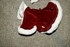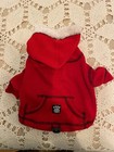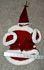 RED SANTA SUIT WITH WHITE COLLAR TRIM. neck is approx 13" and waist is 18"-22". length is approx 13". we have a 10 lb dachsund we bought one for and these are my extras. these velcro and have elastic for hat.