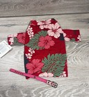 All Star Dogs red floral Hawaiian shirt style collar in size small. Fun tropical look for everyday wear or photos. Preowned condition with minimal wear from normal use.