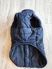 Puppia winter storm coat in size XL. It has a snap collar and quilting at the top bust. The neck is 14 inches, the chest size would fit a dog with 22 inch chest, and the length is 14 inches. The coat is in excellent used condition without any rips, repairs, or faults.