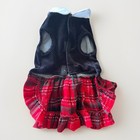 Dog Puppy Fur Baby Velvet Holiday Christmas Dress Red Plaid Skirt Small/medium