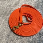 This Redline K-9 Biothane dog leash is designed for all-weather use, perfect for training, tracking, or everyday walks. Made from durable and waterproof Biothane material in a vibrant orange color, it's easy to clean and maintains its flexibility in various temperatures. The solid brass hardware ensures robust attachment and longevity. Excellent pre-owned condition with minimal signs of wear. Ideal for dog owners seeking a reliable and long-lasting leash.32 1/2 inch