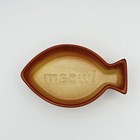Meow Embossed Fish Shaped Cat Food Water Dish Brown Tan Stoneware Pet Supply