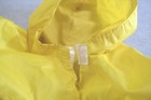 The raincoat is in very good condition with no holes, stains or tears. 2.5" L on the underside, 8" L on the top not including the hood x 8.75" W laying flat. Made in China. Made from 100% Polyester.