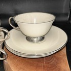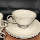 Set of 4 Vintage Flintridge California USA Silver Rim Cups And Saucers