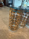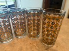 The Culver Seville 22 Karat Gold and Green Highball Glass Set of 8 is a vintage set of elegant round glasses from the mid-1960s. Made in the United States by Culver, these highball glasses feature a Seville pattern in gold and green, with a capacity of 12 oz. With a retro mid-century modern style and a printed backstamp, these original glasses are decorated with a fusion of handcrafted techniques that make them a unique and stylish addition to any drinkware collection. Perfect for all occasions, these highball glasses are a testament to the craftsmanship and design of the 1960s era.