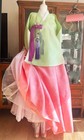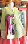 Korean Traditional Dress Dangui Hanbok Set-Green & Peach/Petticoat 2 Norigae Bag