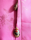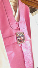 Hanbok is made from non-stretch fabrics, so the top should not fit too tightly. This high-end hanbok set embodies contemporary trends and features exquisite details to admire. The three-layered, six-panel (Galrae) skirt features a soft pink gradient with subtle gold patterns.