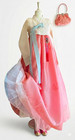 Hanbok is made from non-stretch fabrics, so the top should not fit too tightly. Color: White Top / Peach Pink Skirt. Material: Premium Silk. Tall fit – suitable for wearers around 170 cm (5'7") tall.