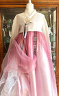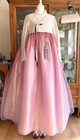 Korean Traditional Dress Hanbok Set- Ivory Top Pink Gallae Skirt / Petticoat Bag