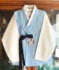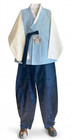 Korean Traditional Silk Hanbok Set Men-Ivory Sky blue Purple Tall Slim Size S