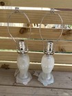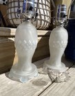 Pair of White Vintage Glossy Glass Table Lamps with Diamond Pattern, Indoor Use